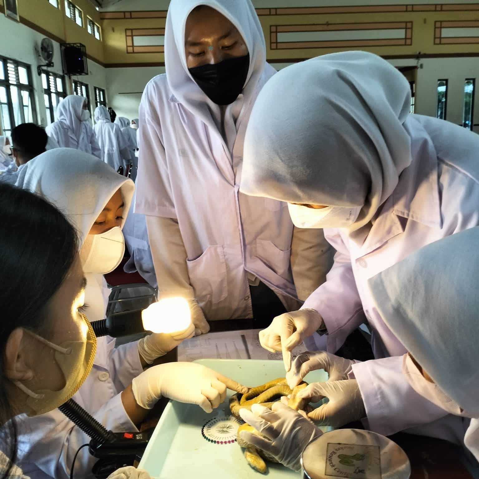 Pada pembelajaran kolaboratif ini, siswa tampak bersemangat dan antusias dalam mengamati morfologi ular. (haj)