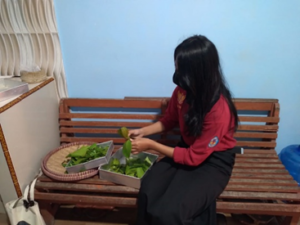 Tujuan pembuatan keripik daun melinjo yaitu mengembangkan kreativitas peserta didik dalam memanfaatkan sumber daya alam yang ada di sekolah. Selain itu juga mengembangkan keterampilan peserta didik di bidang ekstrakurikurikuler kewirausahaan. Hasil yang didapatkan dari pengolahan tanaman melinjo, khususnya pada bagian daun yakni keripik daun melinjo. Proses pembuatan kripik daun melinjo ini yaitu: