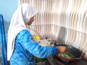 3. Setelah daun setengah kering atau air sudah menguap, maka daun siap untuk diolah. Membuat bumbu yang berasal dari bawang putih, ketumbar, kemiri, garam, yang kemudian dihaluskan.